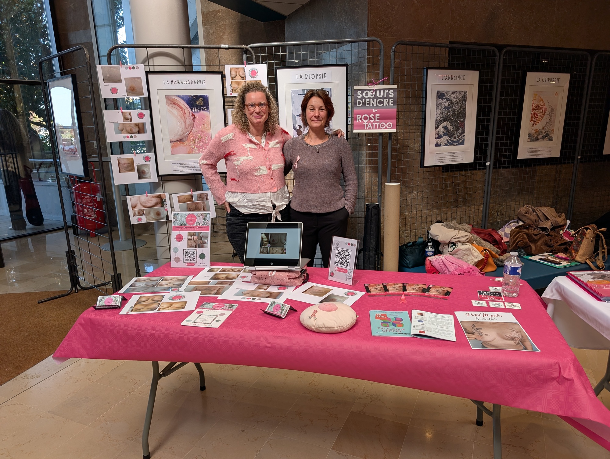 À l’occasion d’Octobre Rose, j’ai eu l’honneur avec ma collègue Muriel Verstaete spécialisée en tatouage d'aréole, de présenter mon travail en tant que tatoueuse artistique de reconstruction, membre de l’association Sœurs d’Encre et membre de l'ISGT dans plusieurs établissements de santé :